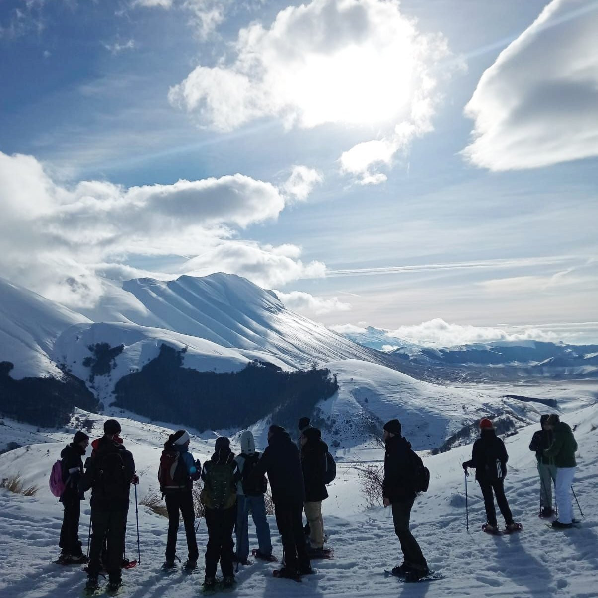 Un giro ad anello al cospetto delle alte cime innevate dei Monti Sibillini, per arrivare sul Monte Prata e godersi il silenzio e la bellezza del bianco panorama che ci circonda, accompagnati da una buona bevanda calda ristoratrice.