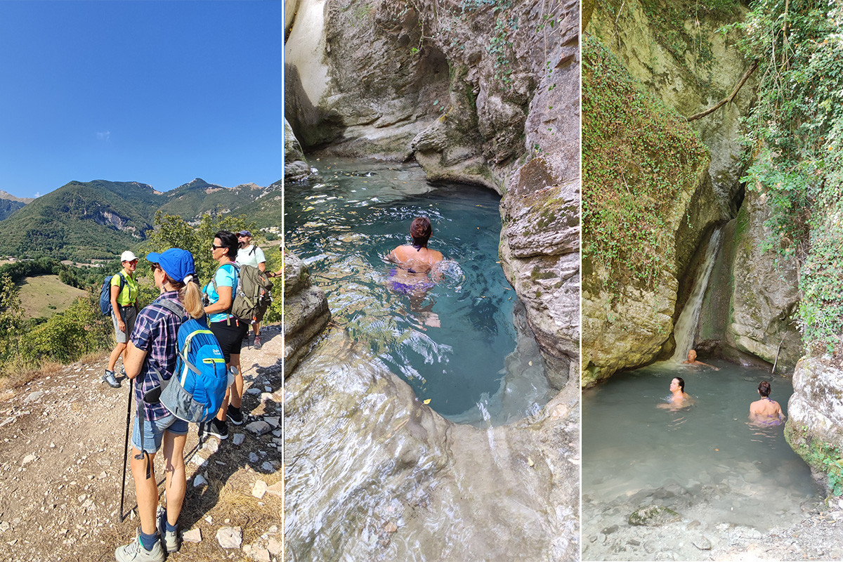 Una facile escursione tra le campagne di Sarnano con vista sui Sibillini e sullo splendido borgo di Sarnano, andremo alla scoperta delle cascate del Pellegrino e delle "Cascatelle" dove ci immergeremo per goderci la frescura delle loro acque.
