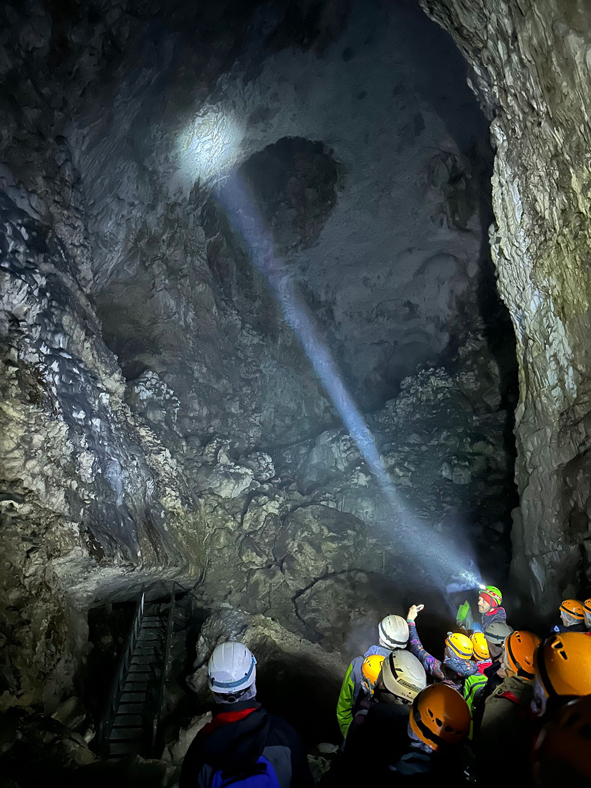 L’itinerario ci condurrà sopra e poi all’interno della montagna, alla scoperta di ambienti straordinari costituiti di calcare, che grazie all’acqua e al tempo hanno dato vita a innumerevoli e straordinarie forme. All'interno della grotta la temperatura é di 6 gradi, quindi serviranno guanti e cappello, e abbigliamento non troppo leggero.