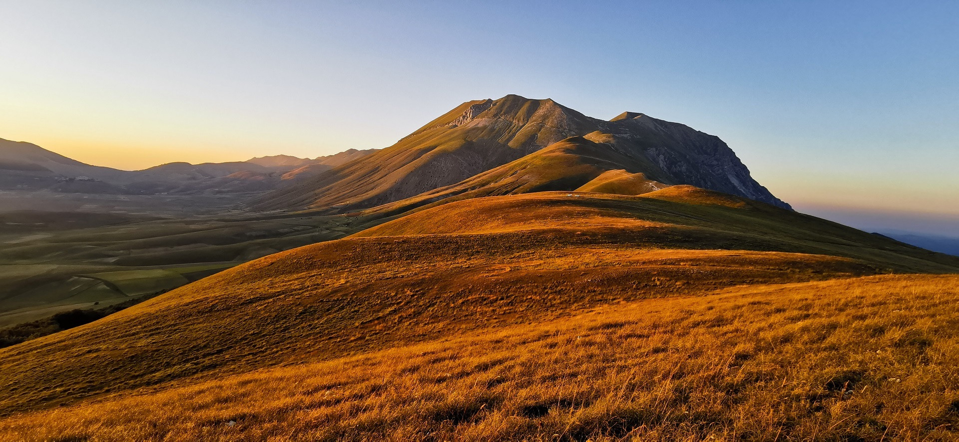 Un tramonto dal Monte Macchialta, con un panorama a 360° sui Sibillini, sulla Laga e su Castelluccio.