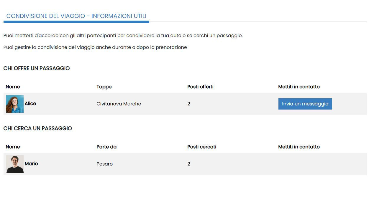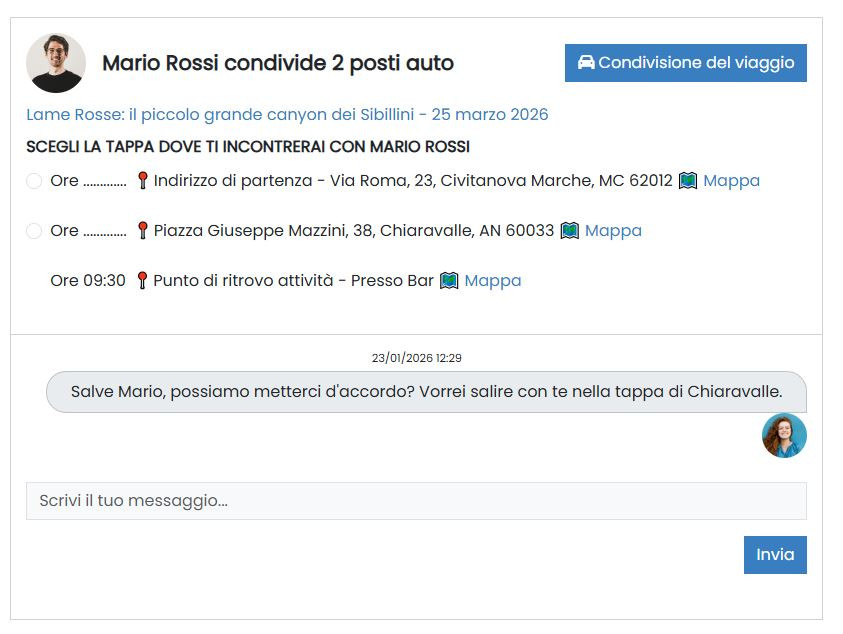 Quando partecipi ad un evento puoi indicare il tuo interesse a condividere il viaggio per raggiungere il punto di ritrovo.
