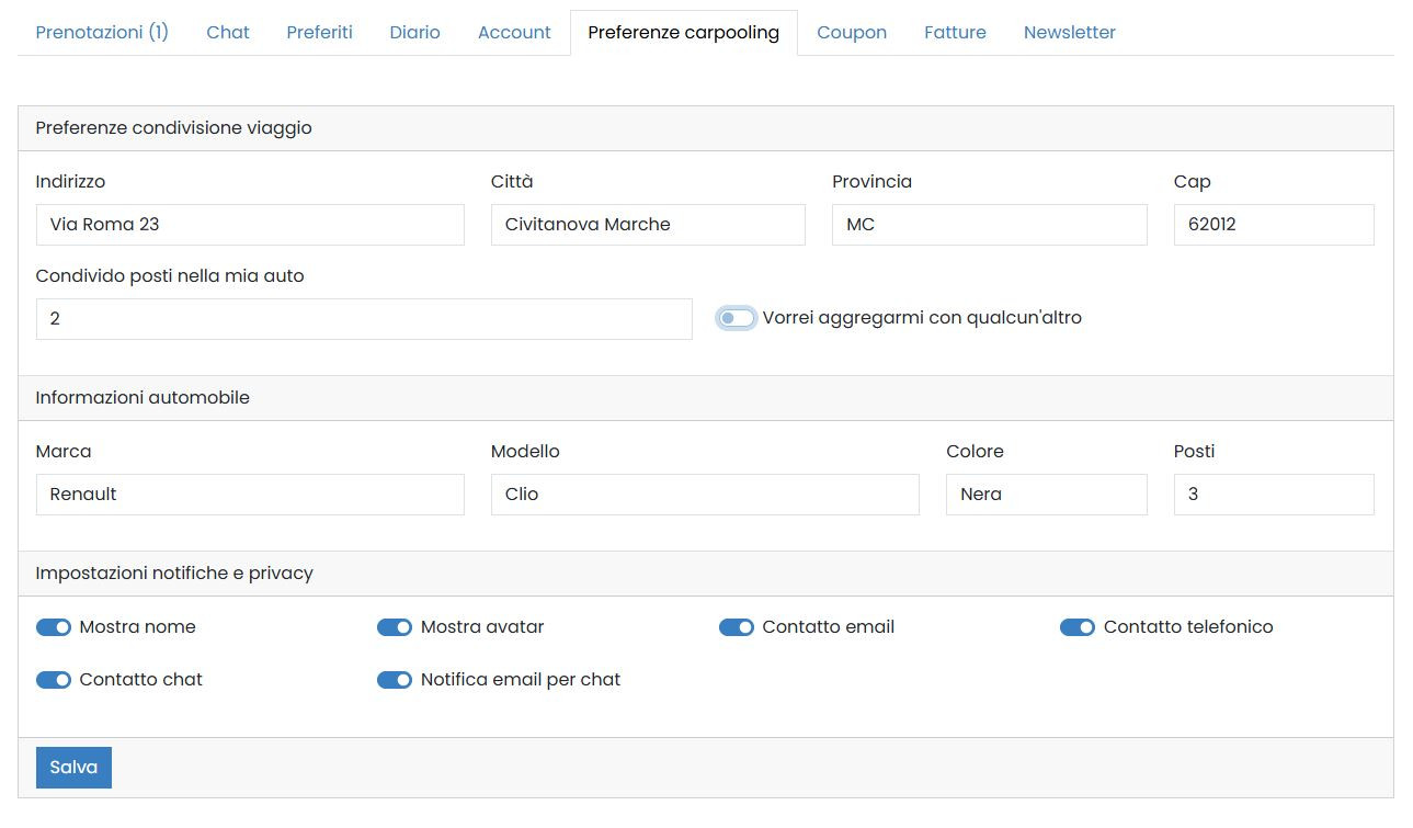 per vedere le informazioni sul Car Pooling.