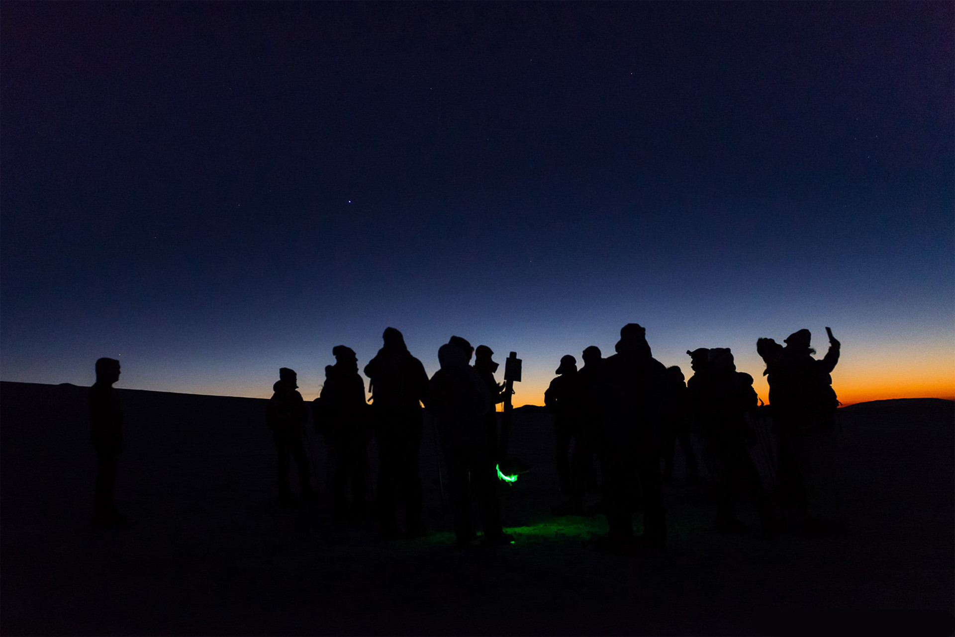 - Ore 24:00. Brindisi di mezzanotte sotto il cielo stellato.