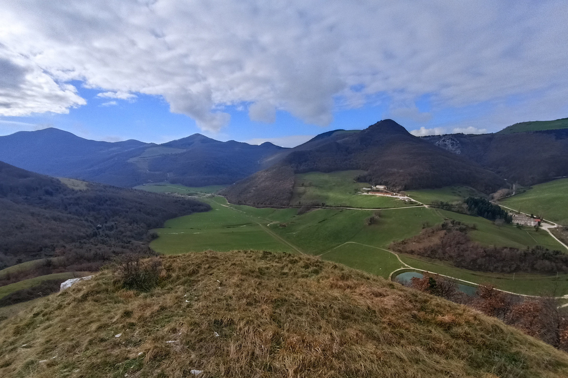 Partendo dall'antico avamposto romano di Podium Ficanum, oggi Poggio San Vicino, immersi tra i fitti boschi, risaliremo una carrareccia molto antica. Per tutta la durata del Medioevo, questa zona è stata interessata dal fenomeno del Monachesimo e tra le Abbazie Marchigiane, una delle più importanti si trova proprio a Valdicastro, fondata da San Romualdo, alle pendici del Monte San Vicino. Il territorio, ancora molto selvaggio, è caratterizzato da stretti valloni e ampi pascoli in quota con paesaggi sorprendenti. Monte la Torre è il miglior punto panoramico per ammirare l'intero territorio, una vista incredibile si estende per la stretta e incantevole vallata sottostante, un balcone naturale dove sono ancora visibili le fondamenta di quella che era una vecchia torre d'avvistamento. Sulla via del ritorno, in un lastrone di Calcare, sarà possibile vedere quelli che qui chiamano “i ginochielli”, che rimandano a una leggenda popolare dedicata al Monaco camaldolese.