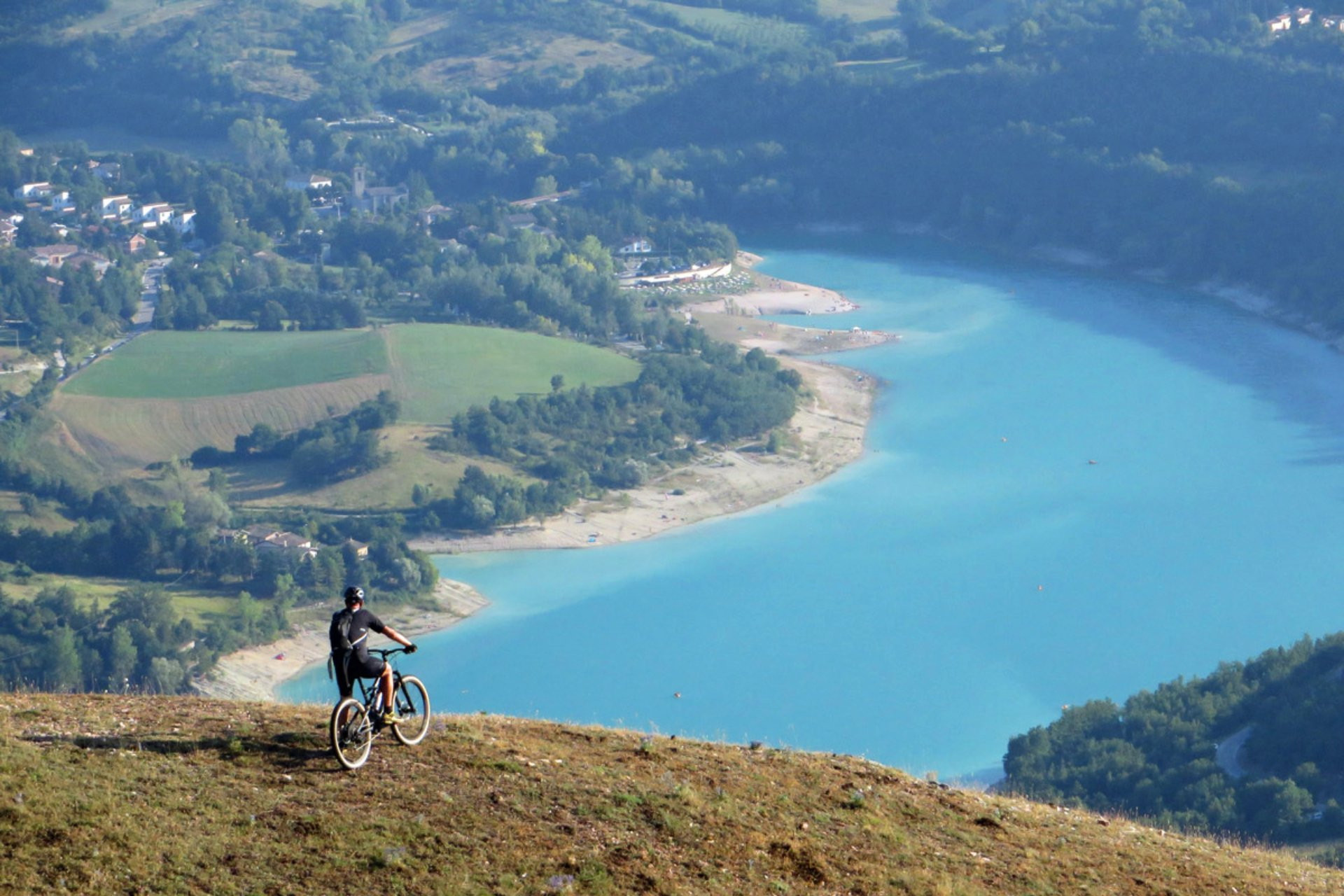 Sosta per il pranzo in rifugio e bagno finale sulle turchesi acque del lago di Fiastra.