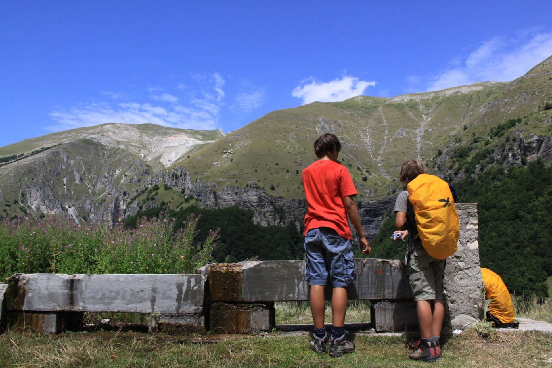 Una delle tappe più belle e panoramiche di tutto il Cammino. Da Fiastra si sale nel bosco su un ripido sentiero sino a Fonte del Pozzo, da cui si potrà godere di uno splendido affaccio sul Lago di Fiastra. Il percorso procede lungo crinali panoramici contornati da verdi pascoli montani. Si discende poi verso Fonte Troncaccia, non sempre comodamente accessibile per il fango. Si risale verso la cresta che separa la Valle d'Alfi da Campobonomo per poi ridiscendere verso l'altopiano di Macereto in cui si trova l'omonimo Santuario. Da qui si percorre un breve tratto di strada asfaltata per ridiscendere verso la valle di Ussita dominata dallo splendido massiccio dolomitico del Monte Bove. Una volta sistemati in struttura ricettiva i ragazzi e le ragazze di C.A.S.A. racconteranno la loro esperienza sul territorio nel post-sisma